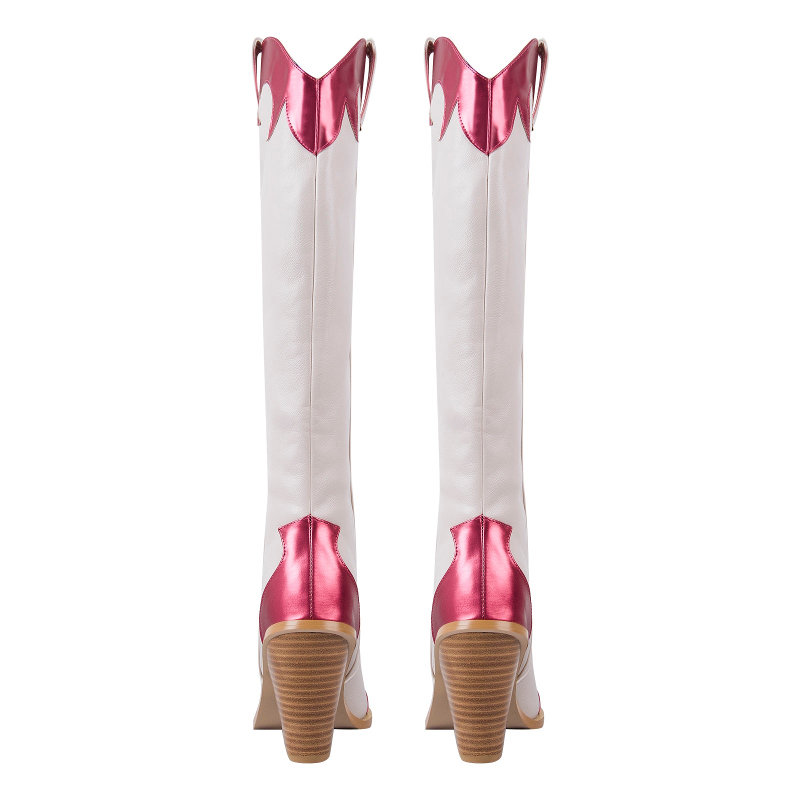 Metallic Leather Trim Knee High Western Boots