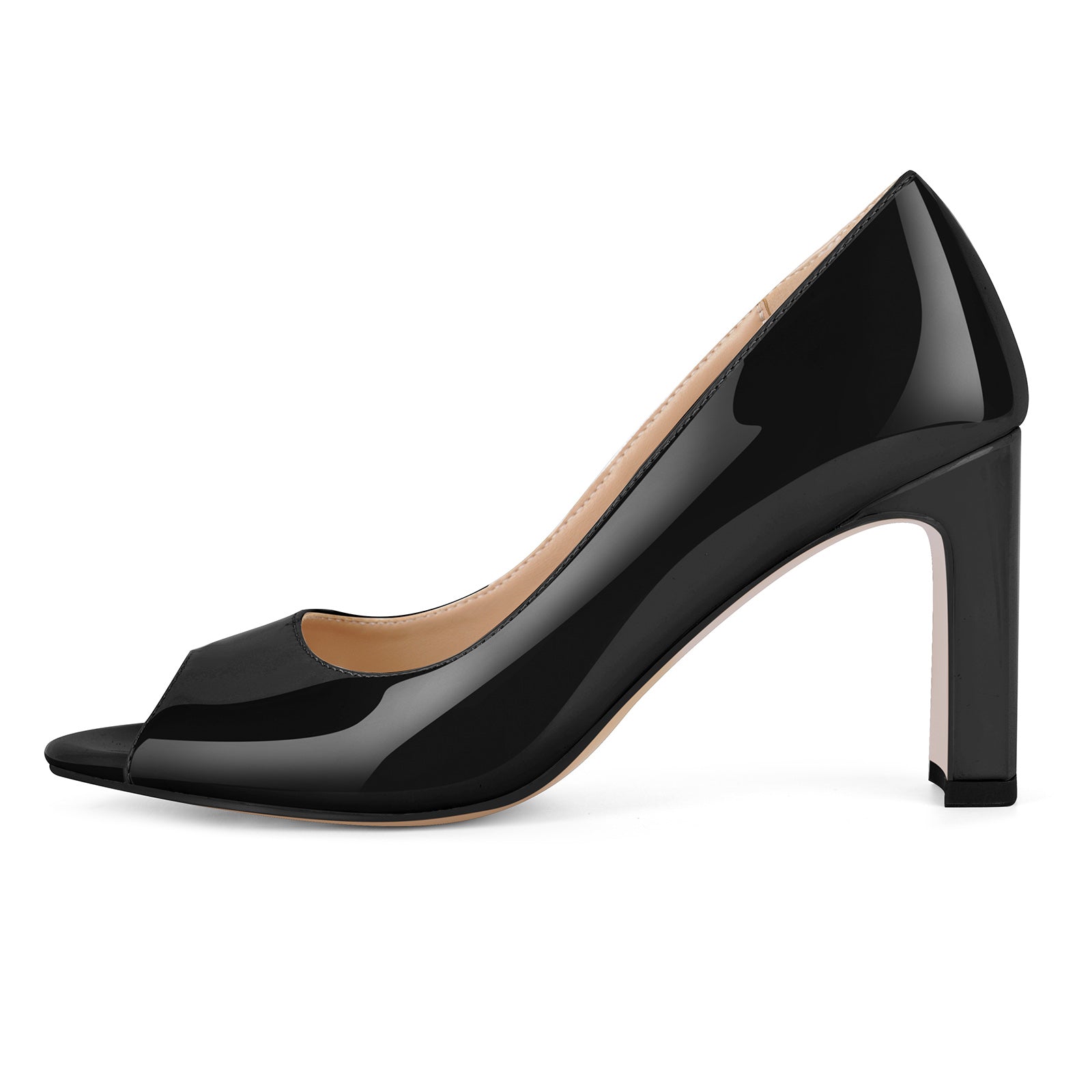 Peep Toe Patent Leather Slip On Pumps
