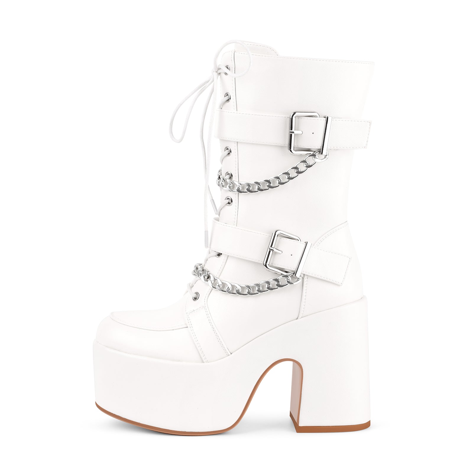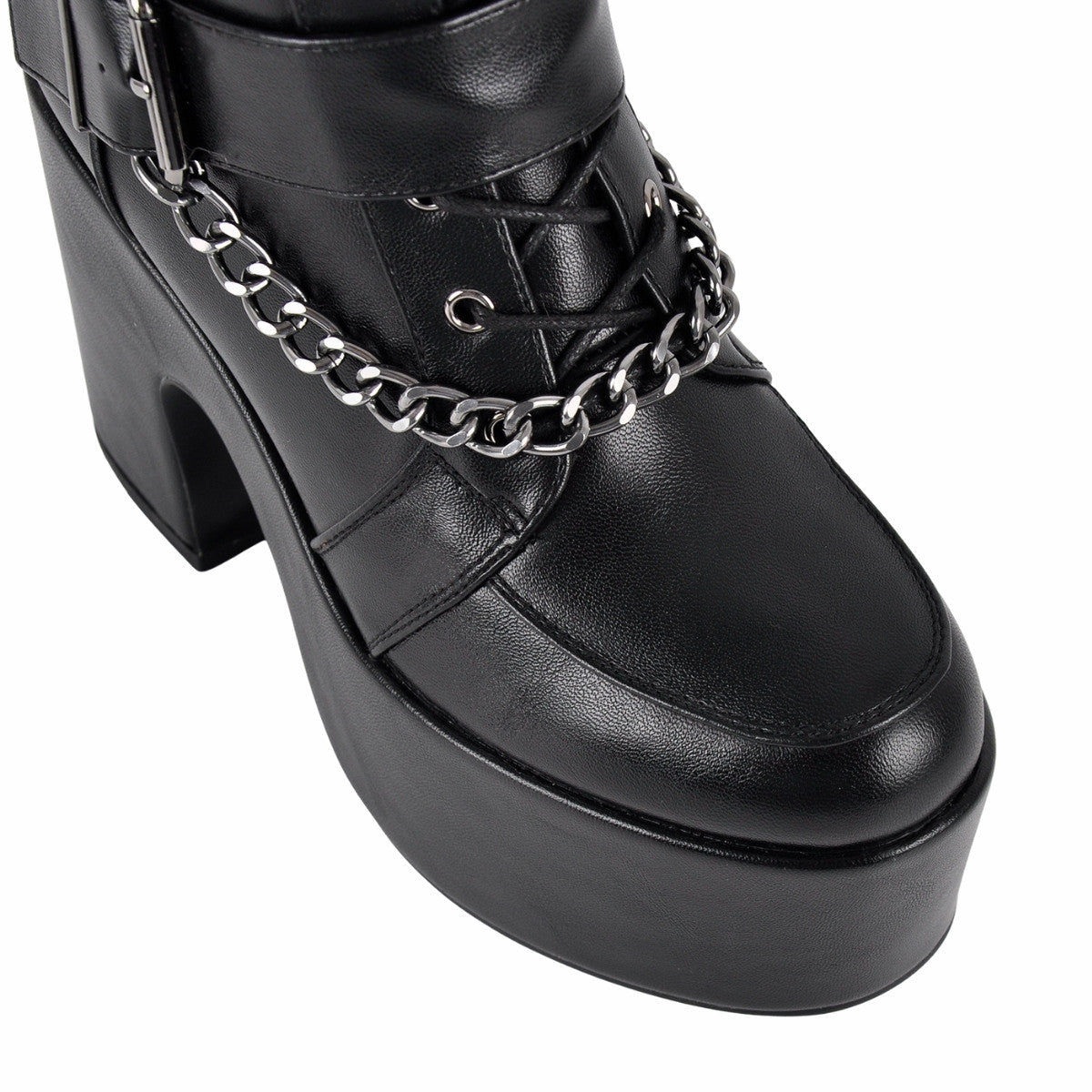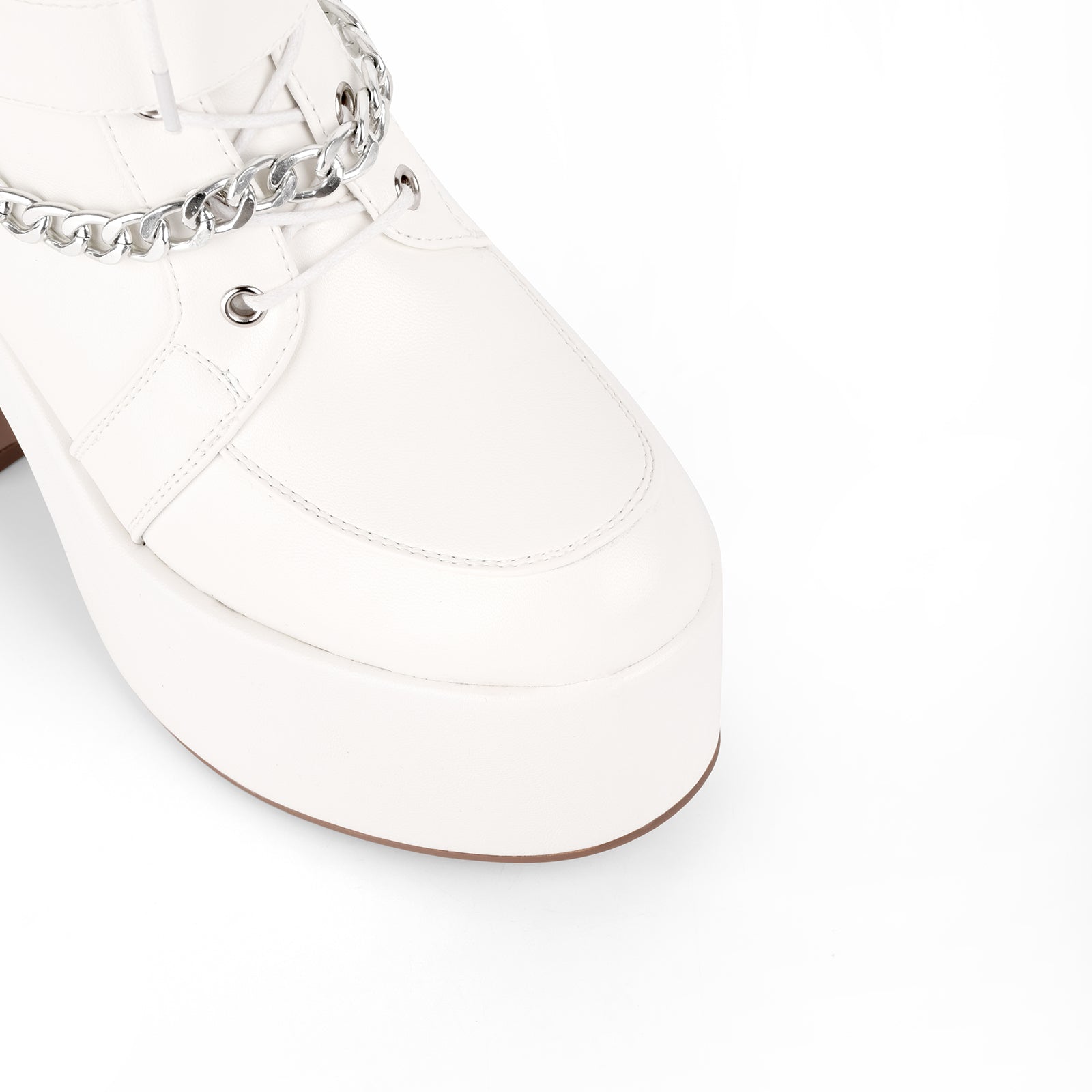 Platform Metal Chain Buckle Lace-up Ankle Boots