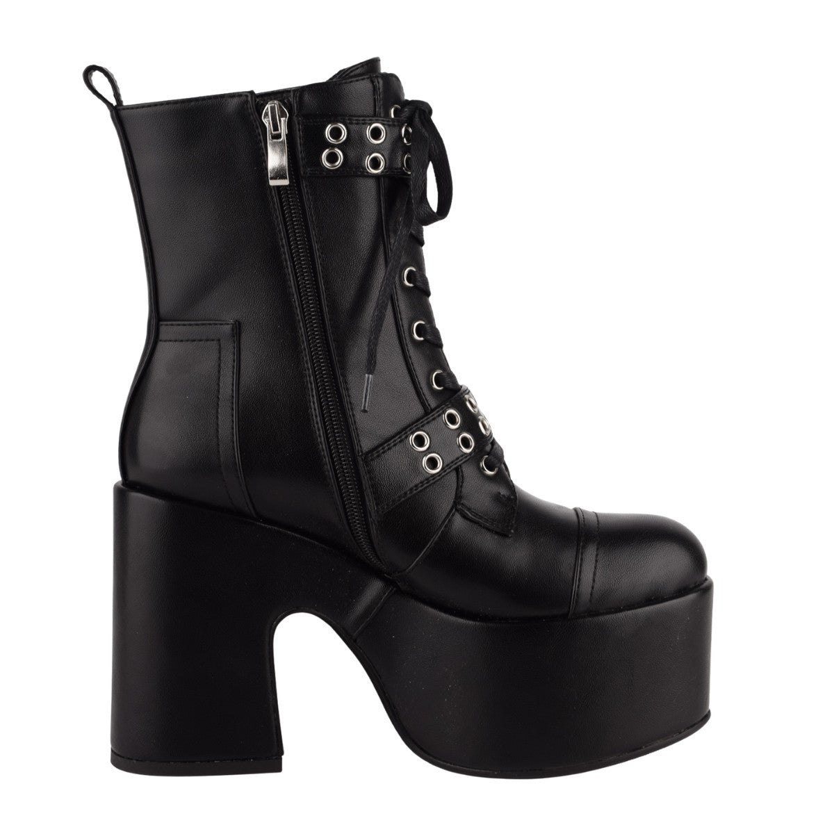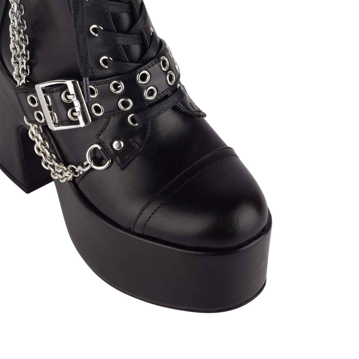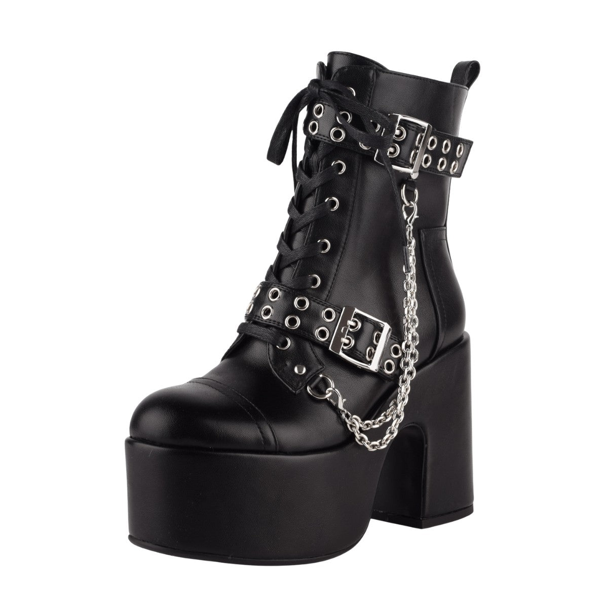 Platform Buckle Metal Chain Lace-up Ankle Boots