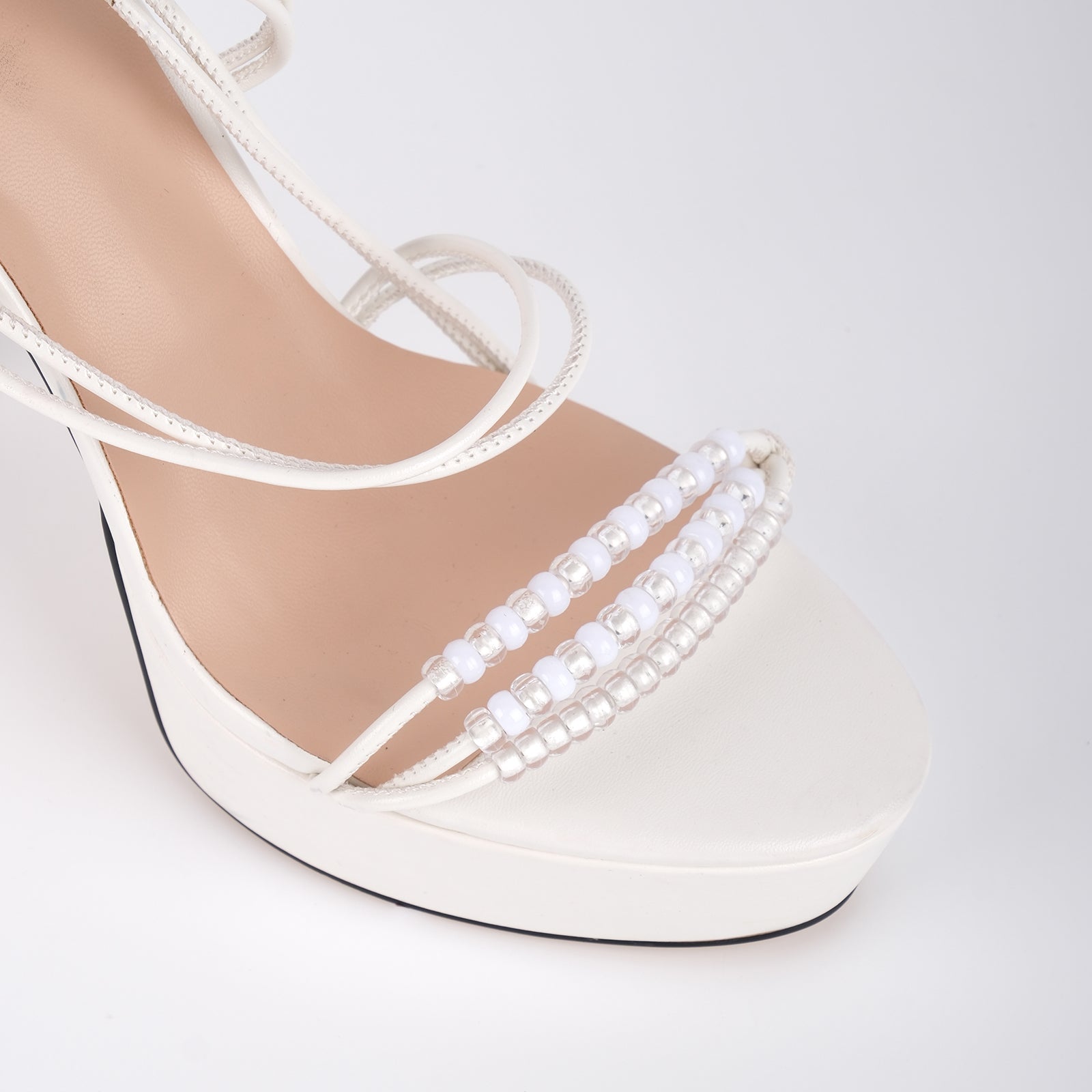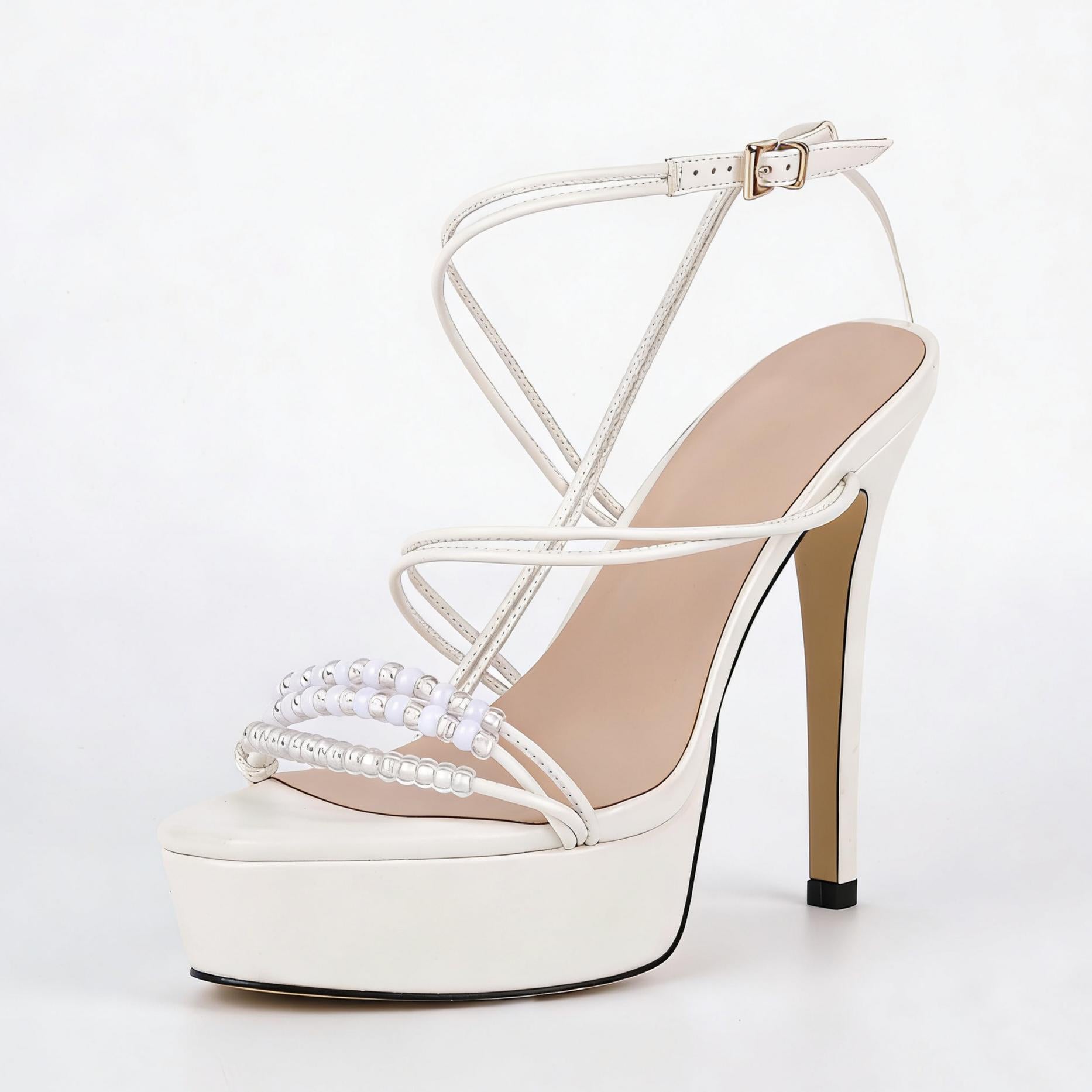Platform Beaded Buckle Strap Stiletto Sandals