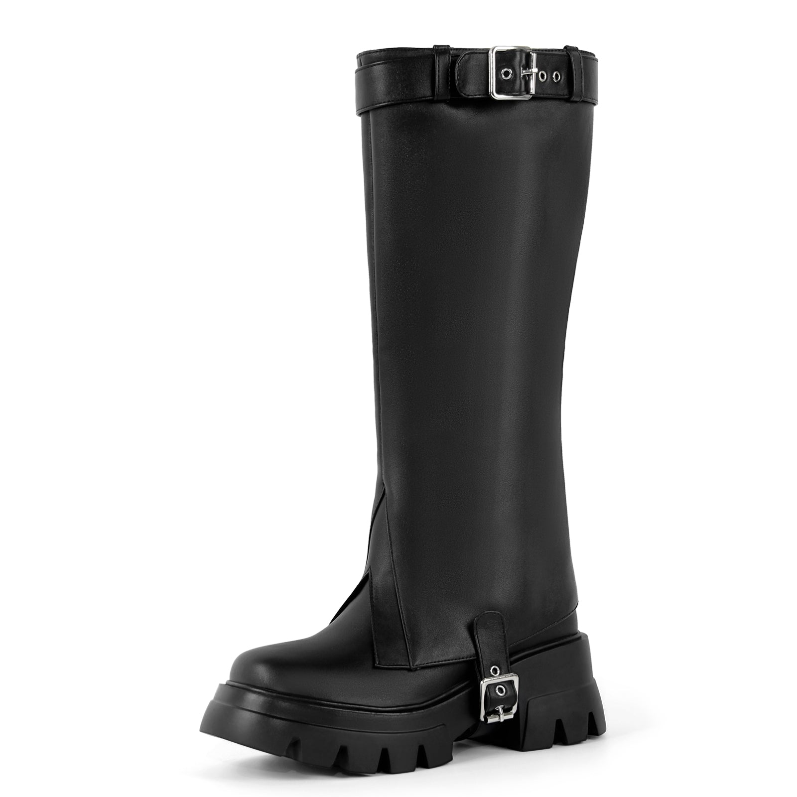 Platform Removable Buckle Knee High Boots