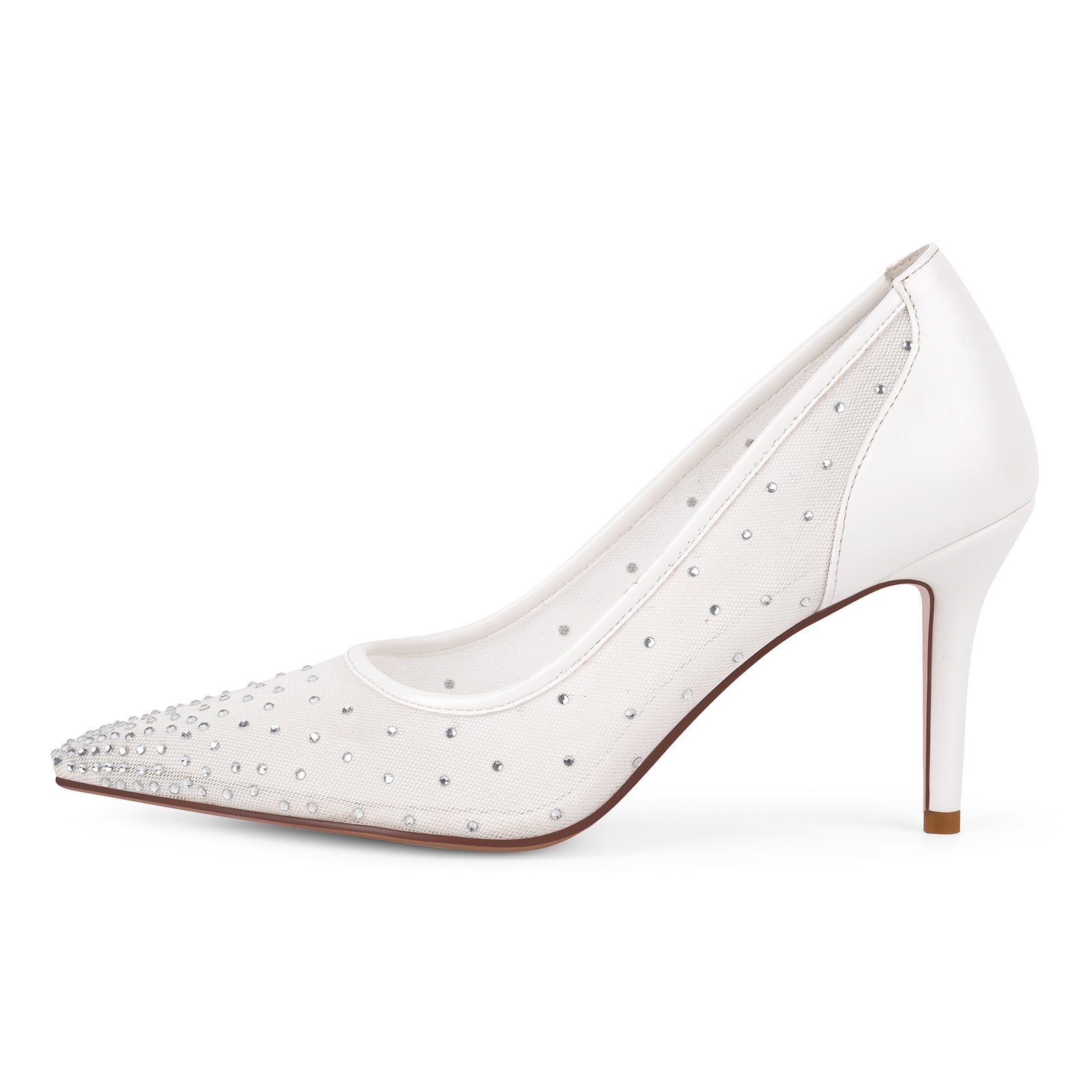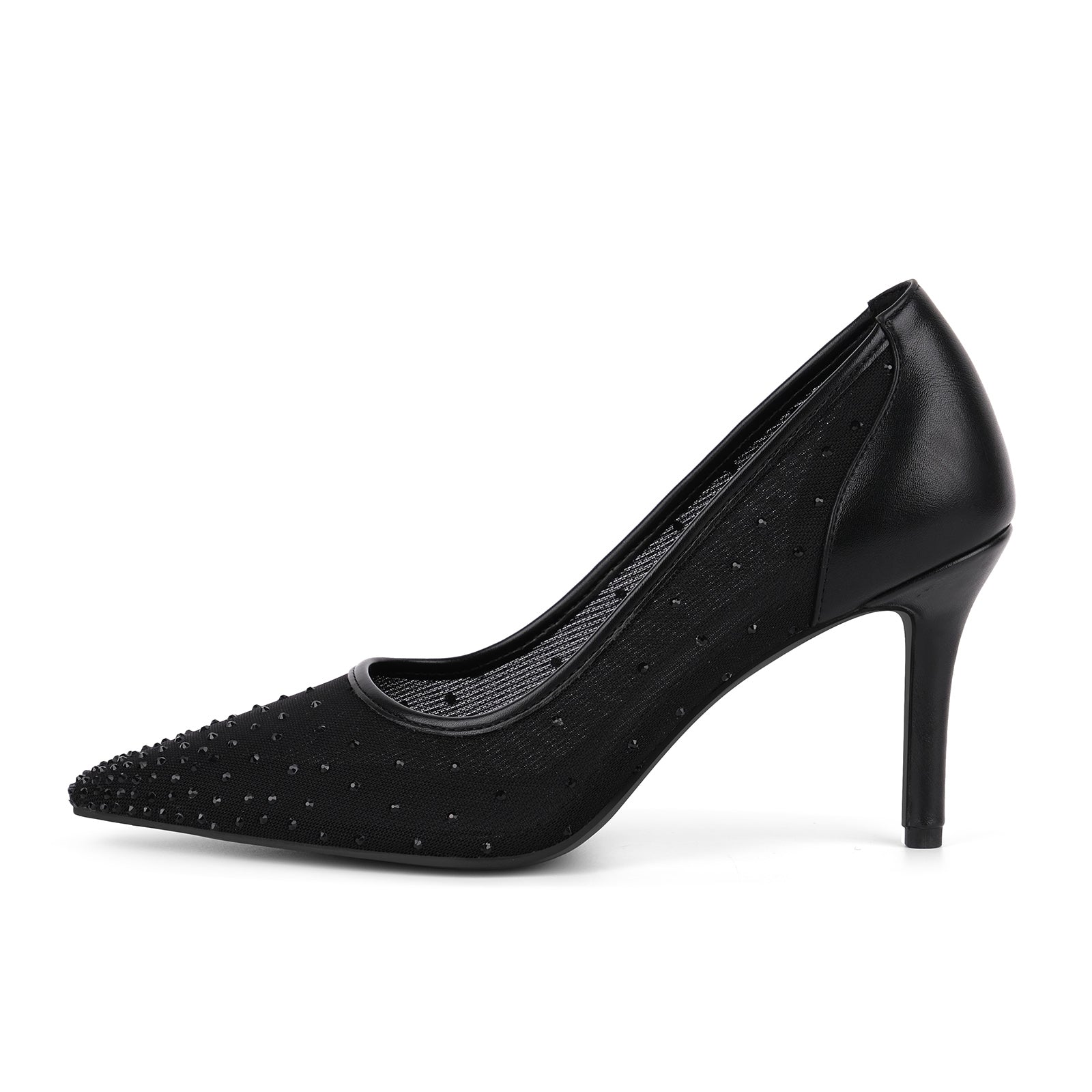 Pointed Toe Mesh Rhinestone Pumps