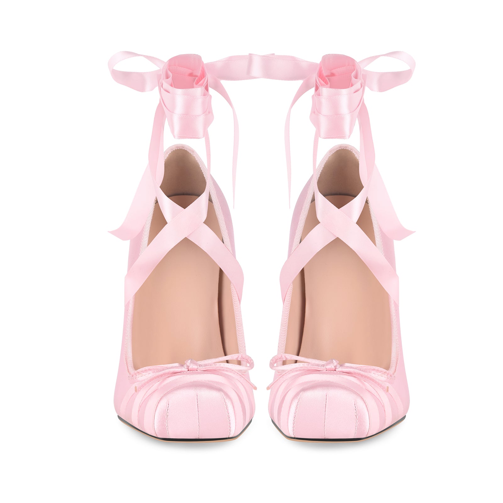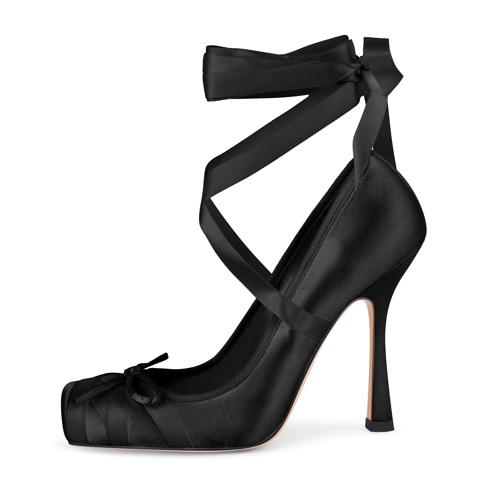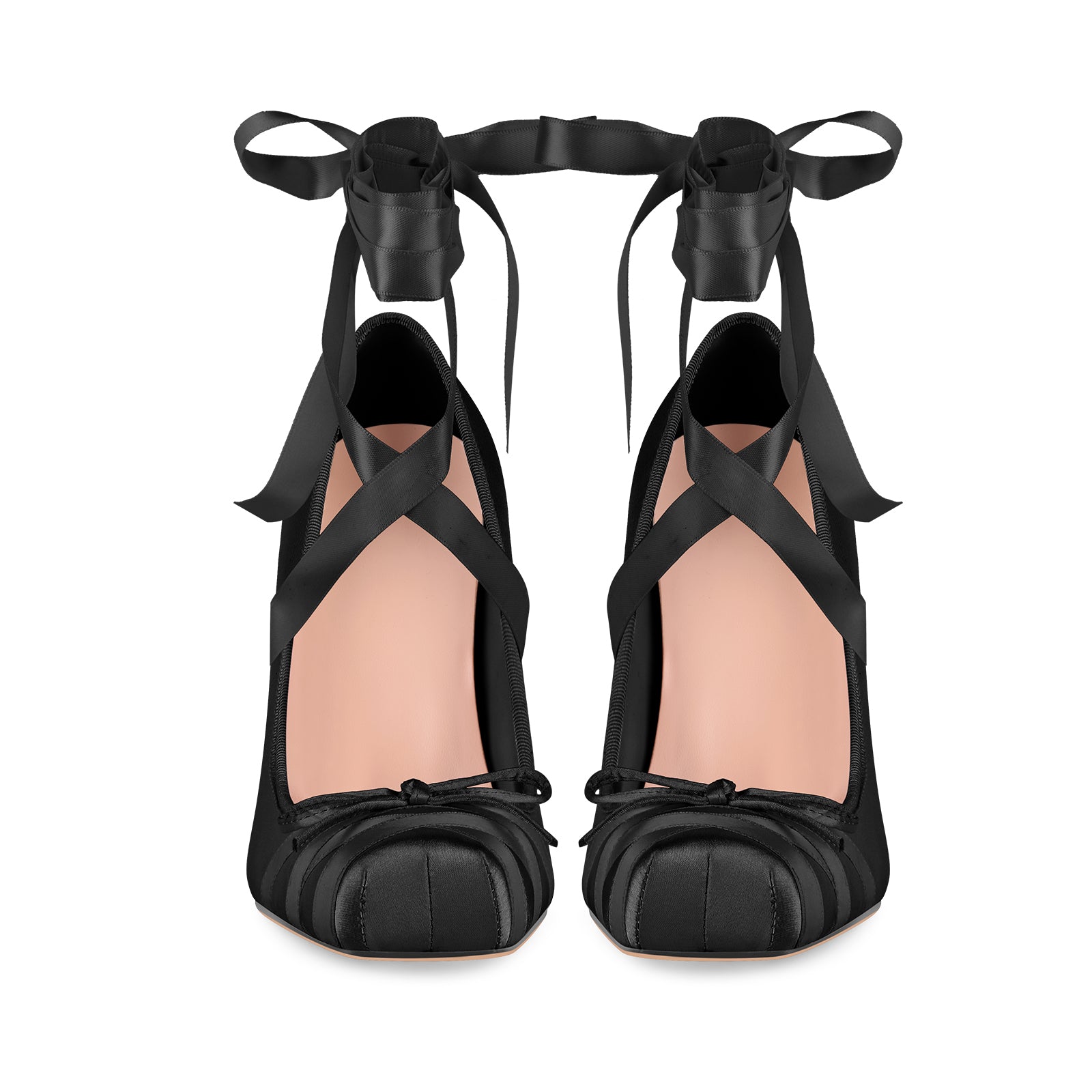 Square Toe Satin Bow Ballet Lace-up Pumps