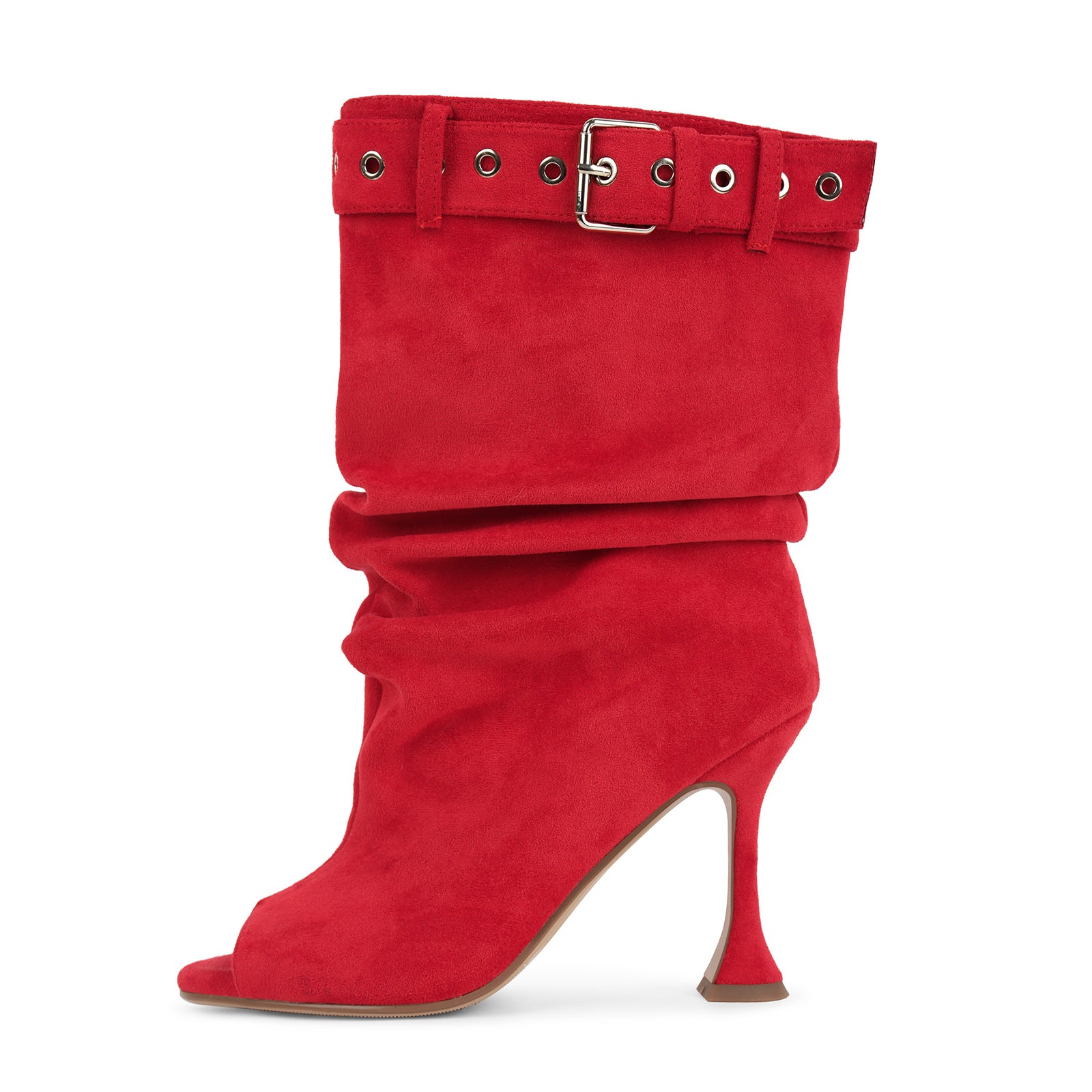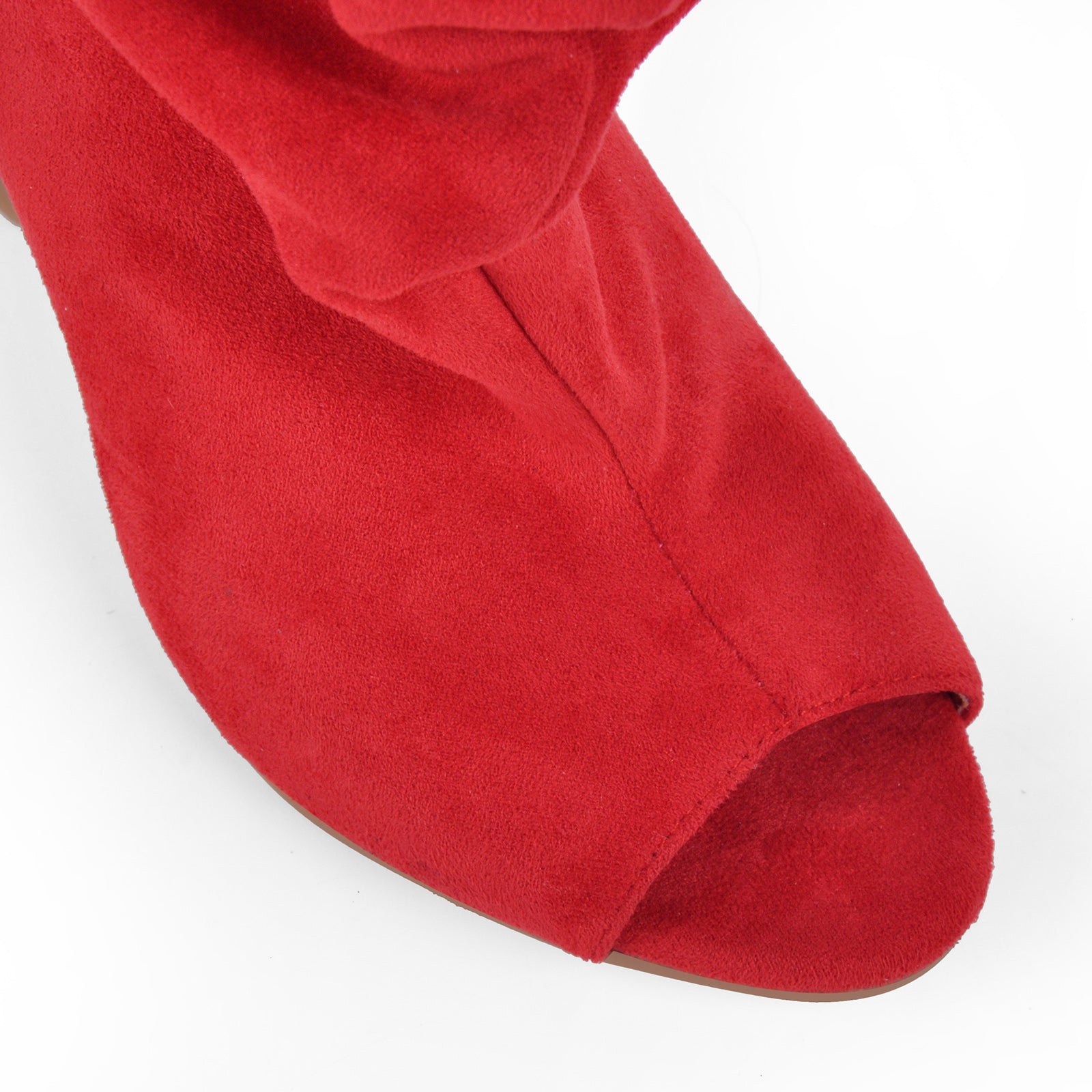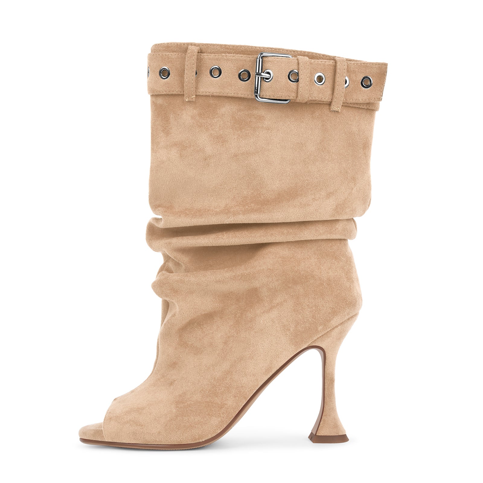 Open Toe Suede Pleated Buckle Strap Ankle Boots
