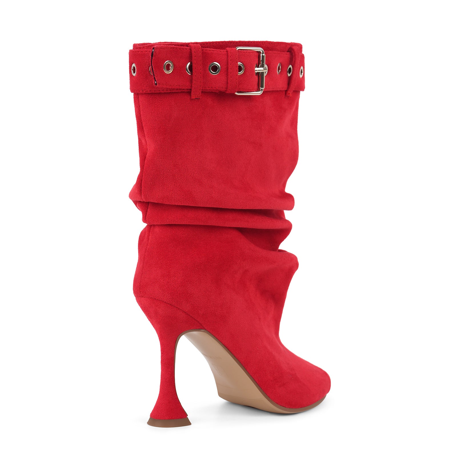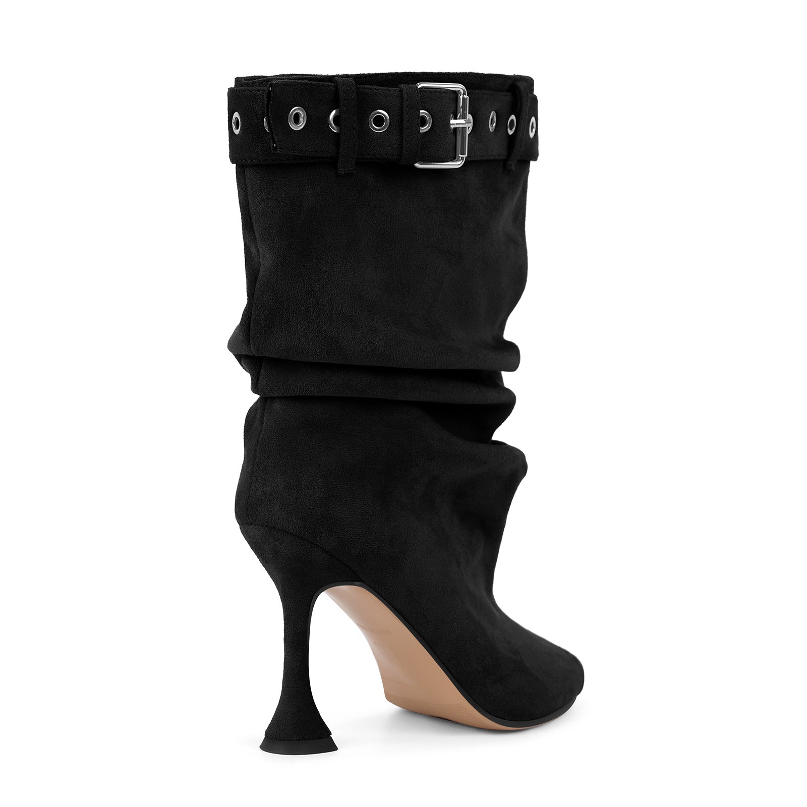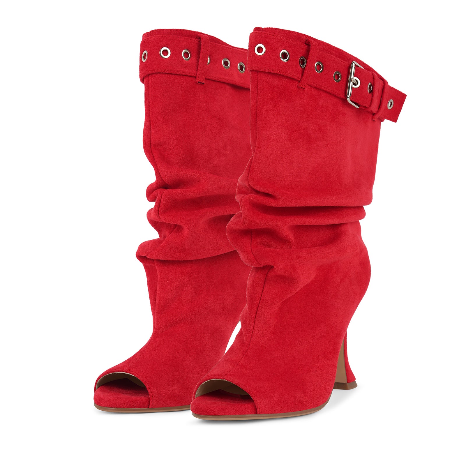 Open Toe Suede Pleated Buckle Strap Ankle Boots