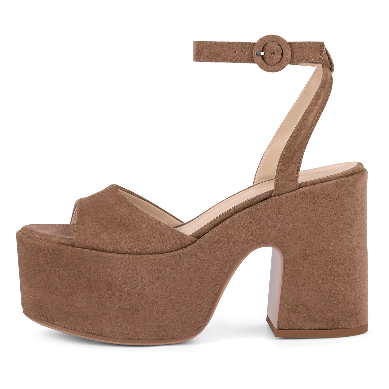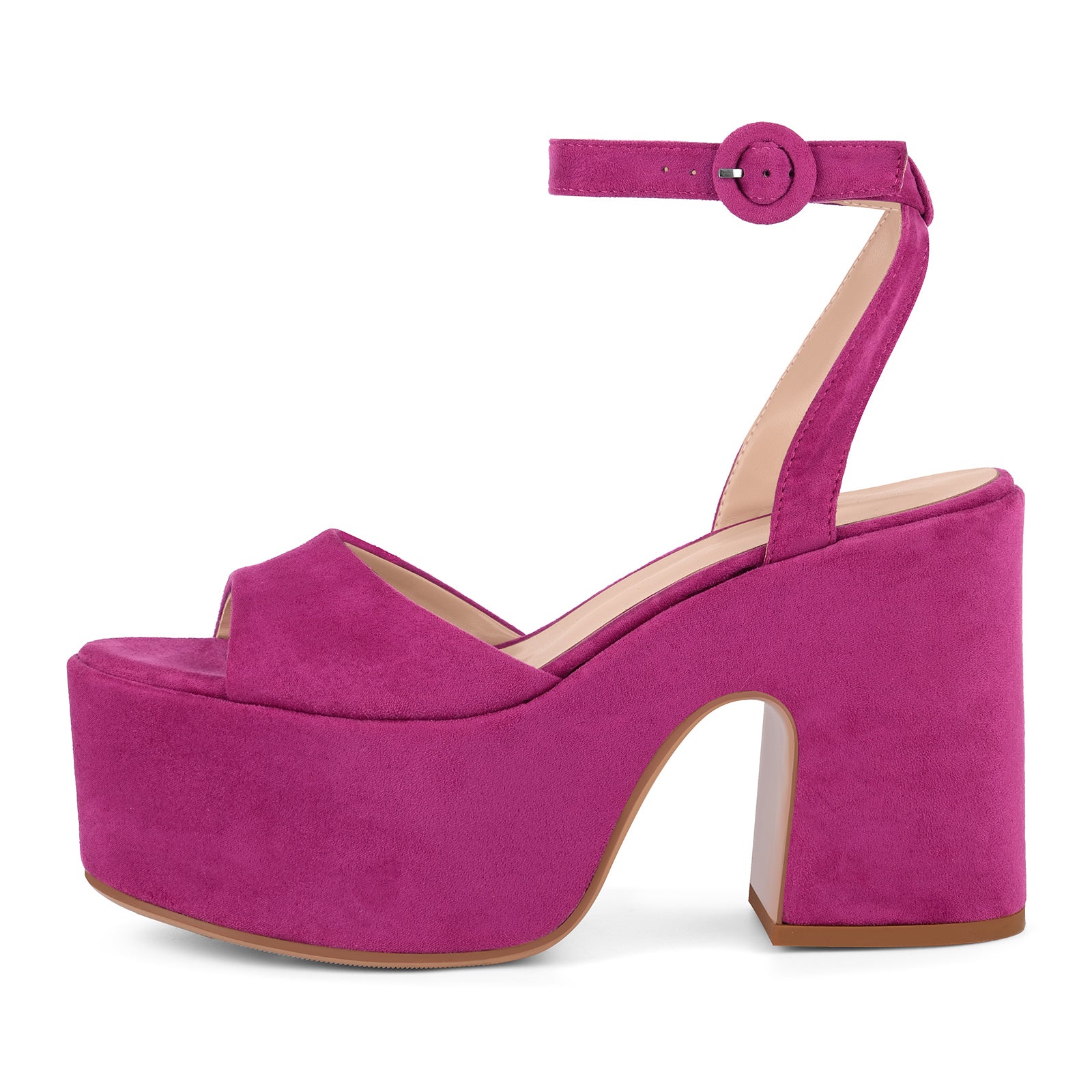 Suede Platform Ankle Strap Chunky Heel Sandals