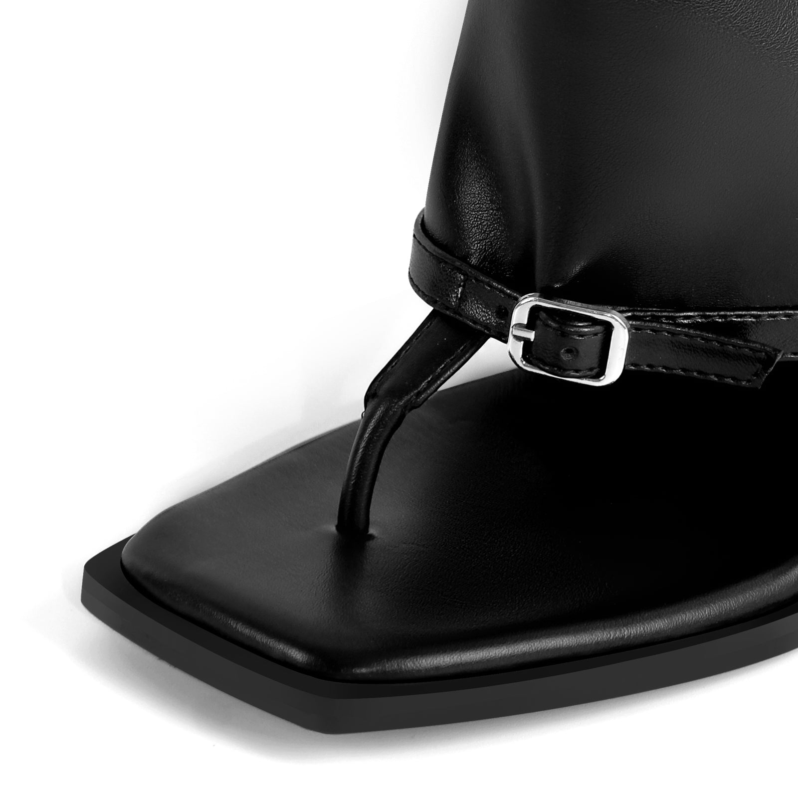 Square Toe Knee High Boots Thong Sandals